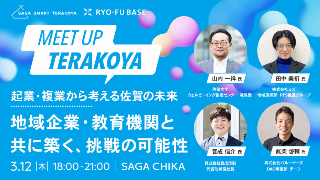 佐賀県が推進する「SAGA Smart Terakoya」は、スキルを活かした『起業・複業』に挑戦する実践型プログラムです。令和7年度は「複業」に加え「起業」にも本格的にフォーカスし、地域から新たなビジネスを生み出す担い … 続きを読む 起業・複業から考える佐賀の未来〜地域企業・教育機関と共に築く、挑戦の可能性〜